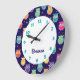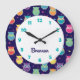 Kids Personalised Cute Owl Pattern Blue Animal Large Clock