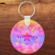 Keychain with beautiful fun colour, for kids, has stars and a psychedelic tie dye look design by, HAMbyWhiteGlove with orange, pink, purple, yellow.