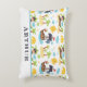 A decorative kids cushion featuring a cute pirate ship pattern with space to personalize with a name. Ideal for adding a playful touch to bedrooms or play areas.