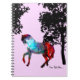 Personalised kids pink horse design, a colourful horse on a pink background surrounded by silhouette trees. Add your name or custom text to the design.