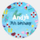 Sticker features water pool with swimming stuffs. Perfect for kid's pool birthday party.