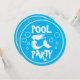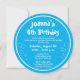 Kid's Pool Party Birthday invitations with mermaid. Under the sea swimming theme party invites for children's Birthday party. Personalised text and background colour. Cute girly fairytale fish design with name and age of child. Whimsical typography template. Cute round circle cut out shape. Make circular invites for girl's 4th 5th 6th 7th 8 th 9th 10th 11th 12th 13th B'day etc. Custom text and graphics. Great for summer!