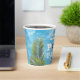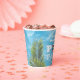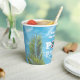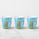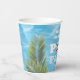 Our kids pool party paper cups are perfect for your next birthday or family celebration. They feature handy spaces to upload your own photo and to add a short message. Tropical palms hang over a glistening back yard swimming pool. They are part of a matching set of party decor themed around your favourite pool and summer vibes.