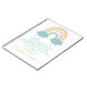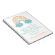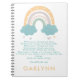 A lovely kids notebook featuring the popular Bible verse Philippians 4:8 in white, and pastel illustration of rainbow with clouds and hearts, in mustard yellow, teal and lilac. Personalize with child's name in mustard yellow.