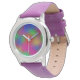 The watch looks exactly as depicted.  I was especially pleased with the watch band, which is a nice quality, supple leather.  I point this out because an option, which was sold out, was with a multi-colored but clearly plastic band.  This is the better choice, in my view.