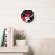 Super cool wall clock design features a red electric guitar and edgy text that can be personalised with your rockstar's first name. Red, grey, black, and white colour scheme.