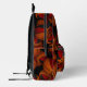 This cool basketball backpack features a random pattern of varied size basketballs turned every which way on a black background - each of the basketballs in the pattern has two recolored panels--one red and one black - customise with the athlete's name & jersey number - by katz_d_zynes