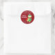 Red round sticker featuring Green Christmas Owl and snowflakes for fun Christmas party. Funky Merry Christmas sticker for party labels and crafts. Make the Christmas party fun and frolic with distribution of sticker gifts to kids. Customise text is available to fit in your Font Style.
