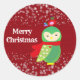 Kid's Red Merry Christmas Green Owl Party Crafts Classic Round Sticker