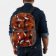 This cool basketball backpack features a random pattern of varied size basketballs turned every which way on a black background - each of the basketballs in the pattern has two recolored panels--one red and one white - customise with the athlete's monogram - by katz_d_zynes