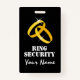 Kid's ring bearer security name badge with lanyard. Personalised badge with clip or cord. Important job for guarding the rings. Interlocking golden wedding rings. Fun idea for son, grandson, brother etc.