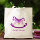 Encourage reading and library visits with this sturdy cute kids rocking horse art library bag featuring a watercolor painting of a child's rocking horse, personalise with your child's name. Currently reads Faith's Books. Uniquely designed by Sarah Trett.