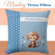 This blue and white pillow has polka dots, stars and a cute monkey, which you can personalise with a name.