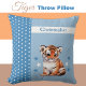 This blue and white pillow has polka dots, stars and a cute tiger, which you can personalise with a name.