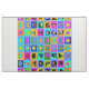 Alphabet Play Mat, Alphabet quilt, 56x56, red blue green, yellow pink turquoise, pastels orange lime green, childs alphabet quilt, contemporary quilt, contemporary alphabet symbols, Virginia Vivier, Vagabond Folk Art, Southwest folk art, boho decor, indie art.