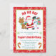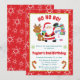 Cute Kids Santa, Rudolph the red nosed reindeer and snowman design with candy cane and snowflake elements on a red and white snowflakes background