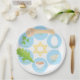 Each plate features adorable illustrations of Zeroa, Beitzah, Maror, Charoset, Karpas, and Chazeret, clearly labeled to help little ones learn as they celebrate.