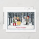 Four children are out caroling in the snowy woods on a cold wintry night in this vintage New Year postcard from 1917.