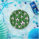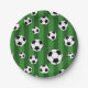 Kids Soccer Ball Pattern on Green Stripes Birthday Paper Plate