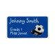 Cute soccer sports themed book labels or school item sticker labels for young school kids or boys. This design features soccer boots and a football against a customisable blue background. The text is fully customisable to include own name and class details.