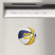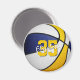 This cool basketball themed magnet features the image of a realistic basketball with alternating blue, white and gold recolored panels - easily customise with the athlete's name & jersey number - by katz_d_zynes
