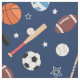 Kids Sports Equipment Pattern on Blue Fabric