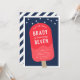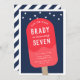 Chill out with these cute popsicle themed party invitations for your little one's summer birthday party. Perfect for birthdays that fall near Fourth of July or Labour Day Weekend, this fun summer design features a red ice cream pop illustration on a navy blue background dotted with patriotic stars. Personalise with your party details in white lettering.