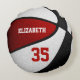 This basketball themed pillow for boys or girls features the realistic image of a basketball that has alternating red, white and black recolored panels - personalise with the athlete's name and jersey number - by katz_d_zynes