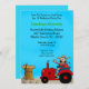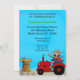 Farm Theme Birthday Invitations with a red tractor and a red barn and farm animals on the back. Fun invitation for kids who love the farm life. Customise with your party details.