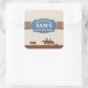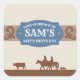 Kids Western Birthday Party Blue/Brown Thank You Square Sticker