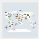 A beautiful illustration of a world map featuring locations of native animals around the world. An ideal design for anyone who loves educational illustrations, geography, animals and maps etc. A perfect design for nursery baby décor, kids bedroom décor, children’s gift ideas, children's birthday party themes etc.