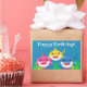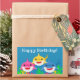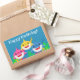 Celebrate your little shark's birthday! Personalised this sticker for any of your party needs or to label any kid items for school. Features a yellow, pink, and blue shark with colourful background. Great for any Under the Sea parties or shark parties. Graphics by Mujka.