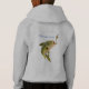 Unisex girls or boy's sweatshirt hoodie by American Apparel has long sleeves and a hood. Has a large print of a fish biting a hook on the back along with text saying "Yellowstone". Front has smaller version of print and text on upper chest area. Shown in size M and in White. This item works best in lighter colours. Customise further or buy as is.