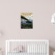 A vintage travel poster depicting a distinctive tree in the foreground with rolling hills and mountains in the background under a cloudy sky.
