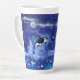 Killer Whales on Blue Full Moon Night Latte Mugs - MIGNED Art Painting