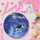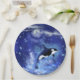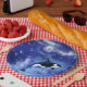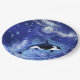 Killer Whale on Full Moon - Art Drawing - Blue Paper Plate