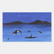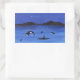An acrylic painting of a pod of orca under a starry, evening sky adorns these stickers!