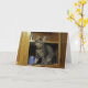 This blank greeting card features our adorable gray striped Siberian kitty named Kimber. Kimber was caught being naughty after he climbed into the kitchen cupboard with the clean glasses. This comical greeting card is perfect for every cat lover.
