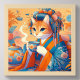 Kimono Cat Geisha Having Tea Japanese Orange Blue The aspect ratio is 1:1