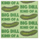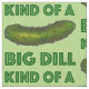 Features an original marker illustration of a crunchy green Kosher dill pickle, with KIND OF A BIG DILL in a fun green font.