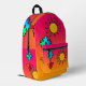 Lightweight and durable, our custom all-over-print Backpack is just what you need. The spacious interior is ideal for travel, school, gym, or any mobile storage need. Bring your stuff with you in style! Features Adjustable padded shoulder straps, two chambers on the inside for laptop storage, mesh side pockets and an identification label.