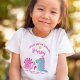 Your daughter will be eager and proud to wear this bold, adorable, modern personalised dino t-shirt announcing her important milestone. A fun, whimsical, playful visual of a cute, bold, kawaii, pink brontosaurus, turquoise t-rex, and fun handwritten typography adorn this loveable toddler girl, custom name, shirt. Customise with her name, school name and class year, or special greeting. Kid and toddler sizes available. Matching invites, thank you cards, yard signs, cap toppers, banners, plaques and other graduation goodies are also available in this trendy and special collection. Guaranteed to preserve cherished memories of her special occasion!