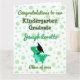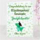 Cute adorable and modern congratulation card for kindergarten graduates. The design features a cute green blue dinosaur T-Rex with a dot/polka background the template is customisable with graduate name, year class,personal title. Perfect for kids/ grandson/ son kindergarten graduation, specially if the kids loves animals and particularly reptiles dinosaurs and T-Rex, they will love it!