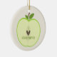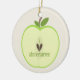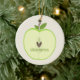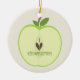 A kindergarten teacher ornament featuring an illustration of half a green apple with two seeds in the shape of a heart. Text says "I (Love) Kindergarten.