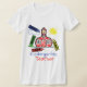 A kindergarten teacher t shirt featuring a schoolhouse scene which appears to have been coloured by a child with crayons in red, yellow, blue, and green which surround the illustration. Schoolhouse is red with illustrations of grass, a cloud, and the sun accenting the design. Red text reads "Kindergarten Teacher." Back side features a single red crayon. Personalise with your name under crayon. Look for matching items in the "Crayons" category of The Pink Schoolhouse.