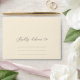 A Wedding Return Address Envelope is an elegant envelope designed for guests to send their RSVP or thank-you notes back to the couple after the wedding. This envelope features a neatly printed return address on the back flop in a stylish, formal font that matches the wedding theme. The front has "kindly deliver to" in stylish font and little dots in three lines for easier addressing.