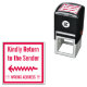 This rubber stamp design features the messages "Kindly Return to the Sender" and "!!! WRONG ADDRESS !!!", along with a wavy arrow shape. It could be used to indicate that received mail has been delivered to the wrong address, and should be returned to the sender.