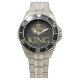 Has heft and feel of expensive stainless steel quartz watches. Good band with safety catch. I removed links, which is easy because engraved arrows show direction to push the linking pins. As always by this seller, the image (a railroad logo) is a perfect reproduction of my emailed image, and is precisely spaced and aligned.