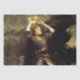 A knight in shining armour, with a red cape flowing behind him, reverently raises a gold crown above his head against a mountainous backdrop. The scene exudes an aura of mediaeval heroism and epic quest. This painting is called “King Arthur” by Charles Ernest Butler.