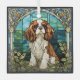 Glass ornament for Christmas or everyday featuring a King Charles Cavalier Spaniel Dog done artistically in a stained glass window mode.